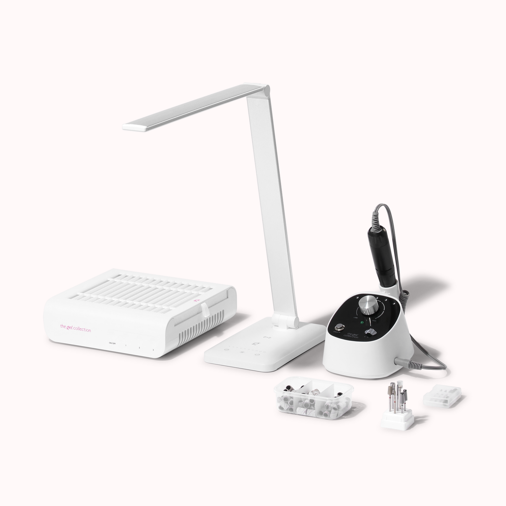 I vår ALL-IN utstyrspakke får du alt du trenger for å forberede, file og fjerne negleprodukter med en elektrisk neglefil. Både selve den elektriske neglefilen, en masse av våre flotte bits og en neglestøvsuger som sørger for at filestøvet blir effektivt oppsamlet mens du filer. Alt dette gør både din negleoplevelse mere behagelig, effektiv og naturligvis hurtigere. Derudover medfølger vores fantastiske bordlampe, der sørger for at du altid har optimalt arbejdslys, når du laver dine negle derhjemme.