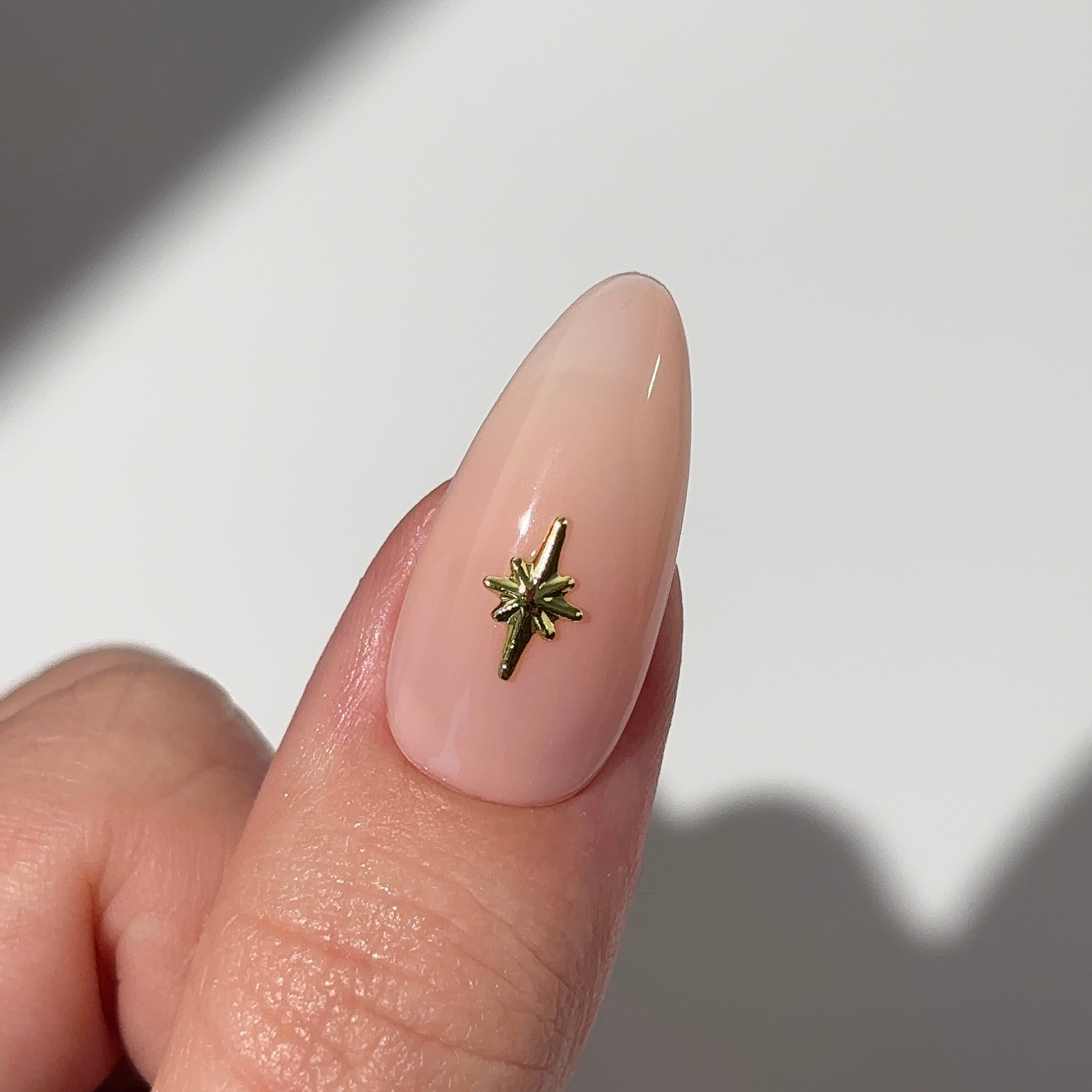 Plasser de ønskede formene i et uherdet gel-produkt med en pinsett. Herd produktet som du normalt ville gjøre. Avslutt ved å forsegle med Top Coat No Wipe.