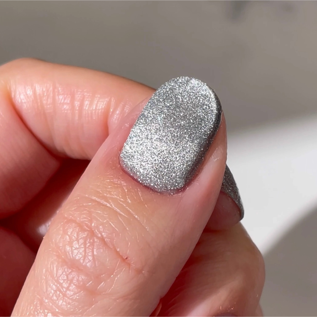 Cat Eye Mercury er en kjølig og elegant metallfarge. Den speillignende refleksjonen skaper et moderne og tidløst uttrykk - perfekt for en elegant look med et futuristisk preg.