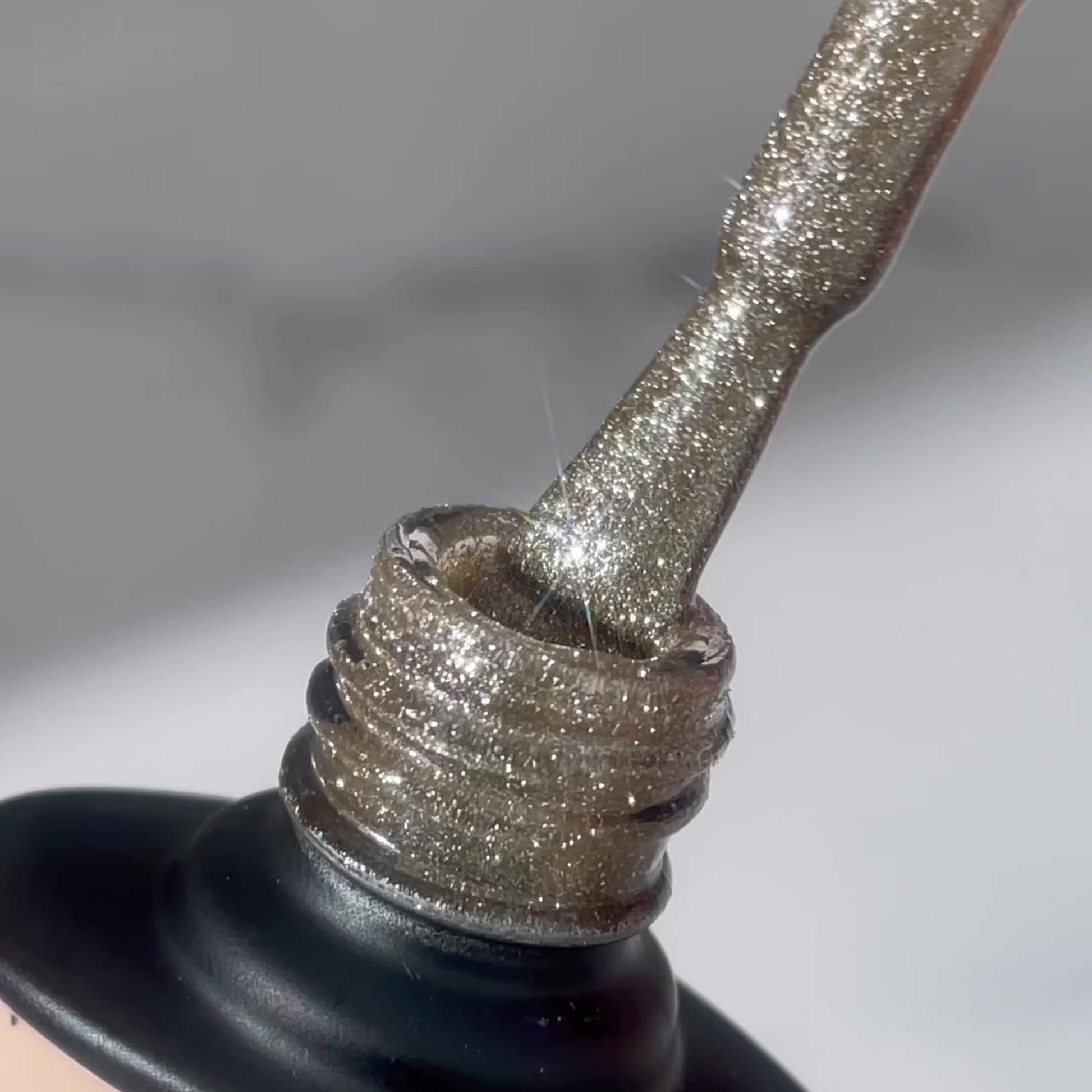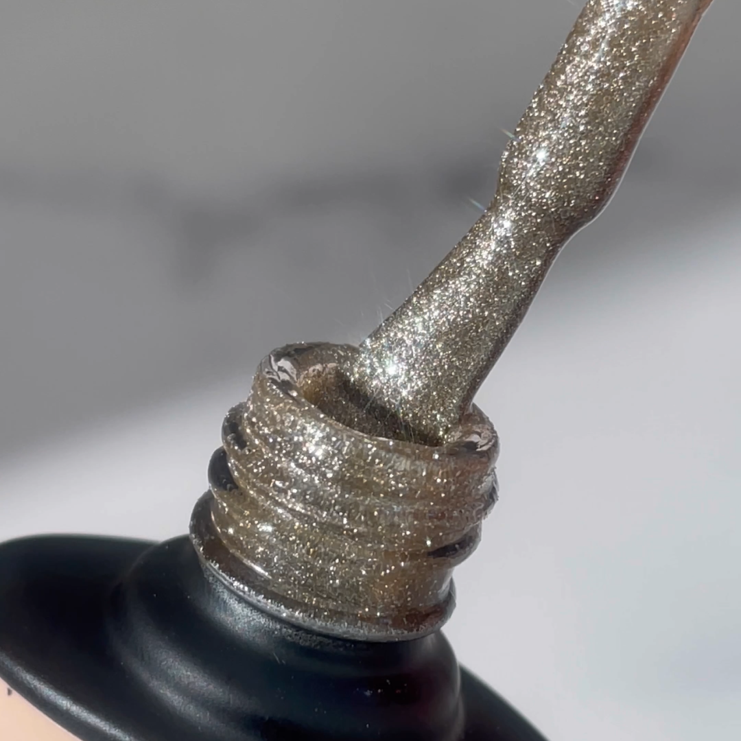 Cat Eye Saturn er en myk og elegant sølvfarge med et hint av gylne undertoner. Den varme metalliske gløden skaper en sofistikert balanse mellom kjølig eleganse og eksklusiv varme, noe som gjør den ideell for en tidløs og luksuriøs look.