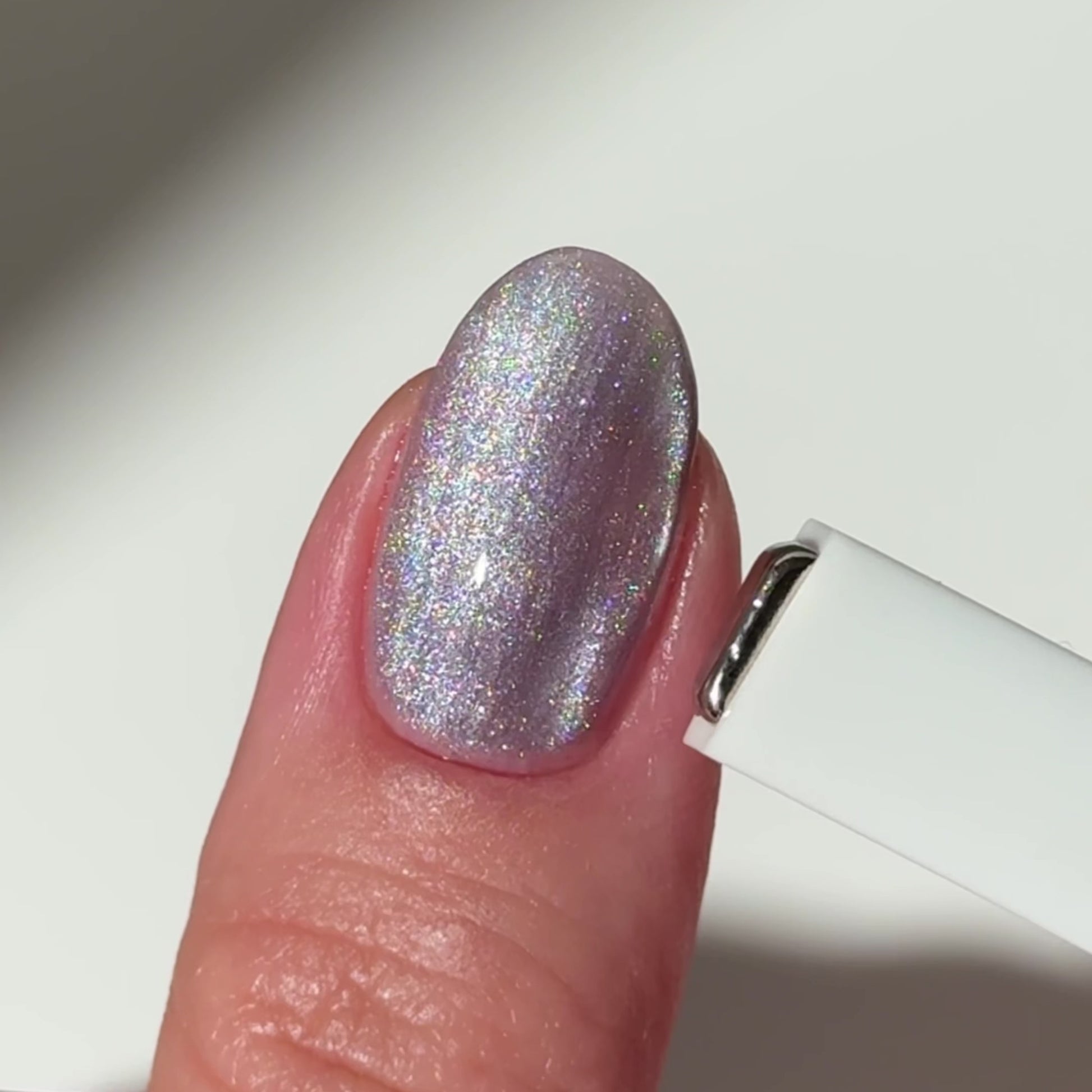 - Påfør et andre lag Cat Eye Gel Polish og bruk den medfølgende Cat Eye Magnet for å skape ønsket mønster. Når du er fornøyd med mønsteret, herder du raskt i UV/LED-lampen for å feste designet.