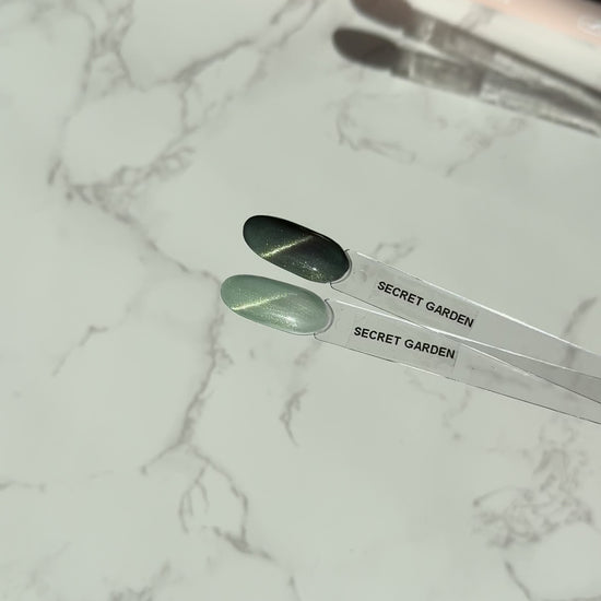 Cat Eye Secret Garden er en myk grønn Cat Eye med glans og en frisk, botanisk energi. Den iriserende effekten fanger lyset som solstråler mellom bladene og gir neglene dine et naturlig, men likevel magisk preg.