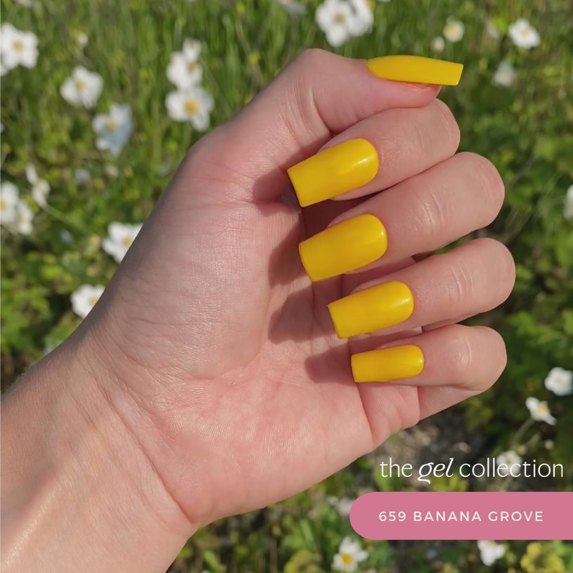 659 Banana Grove fra The Gel Collection er en livlig gul med en frisk og energisk nyanse som vekker glede og optimisme. Den er strålende og innbydende, og passer perfekt inn i en palett av glade og friske farger.