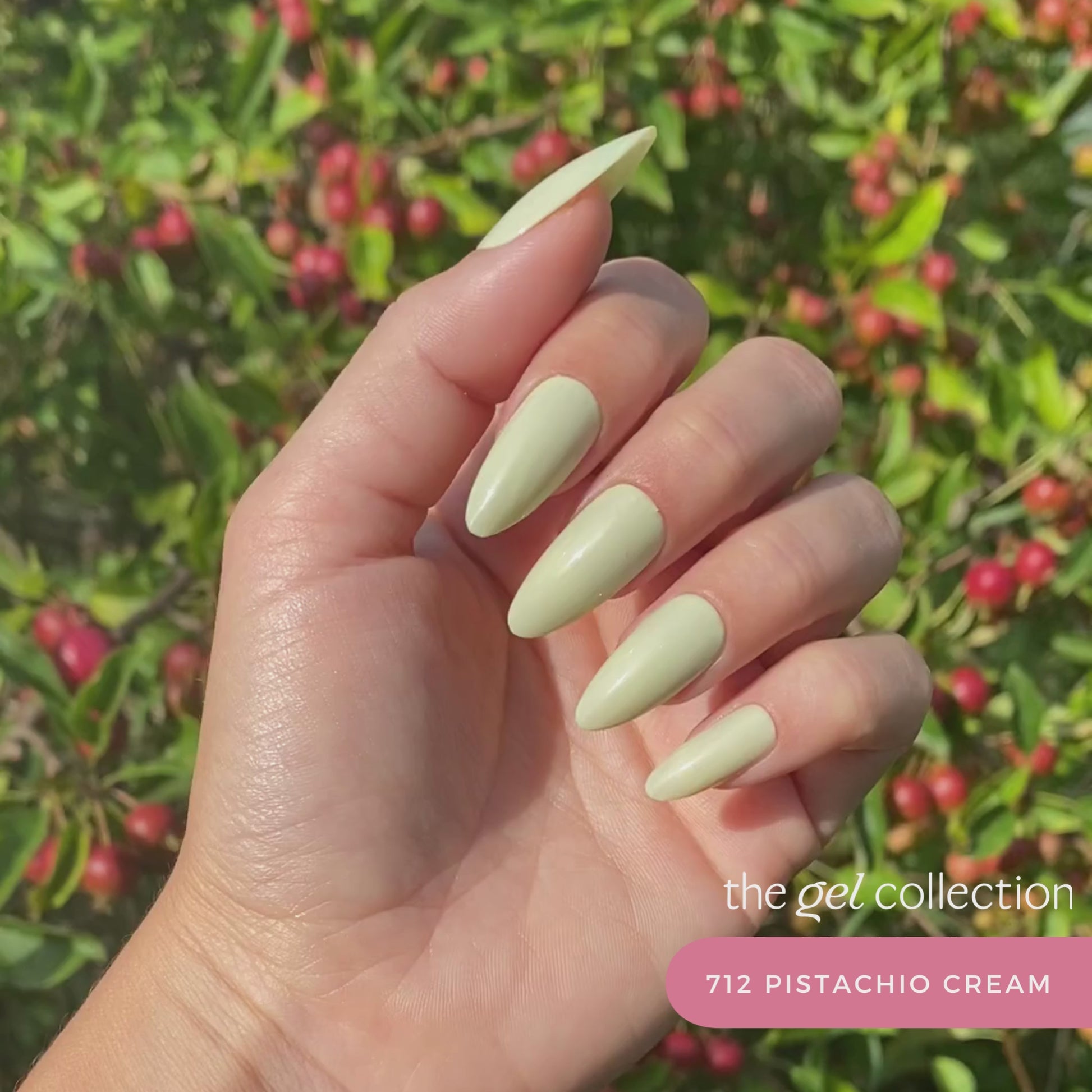 712 Pistachio Cream fra The Gel Collection er en vakker grønn farge med en dempet tone. Fargen minner om pistasjnøtter og fremmer en fantastisk beroligende følelse.