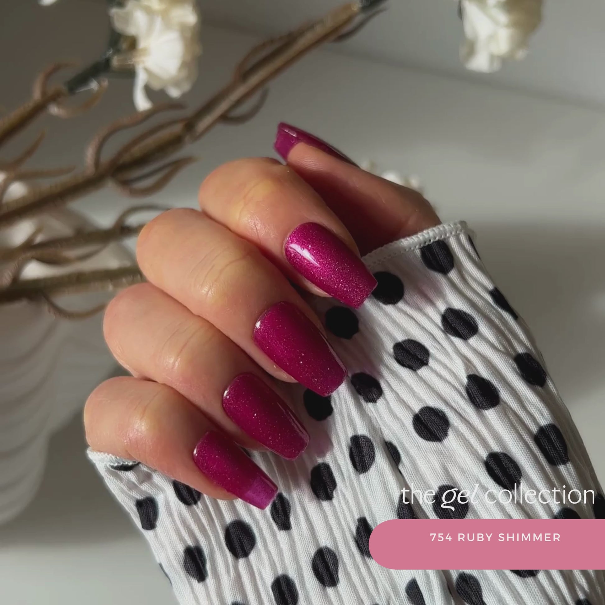 754 Ruby Shimmer fra The Gel Collection er en delikat og prangende lilla nyanse med fint glimmer. Den er ekstremt attraktiv og fanger raskt øyets oppmerksomhet.