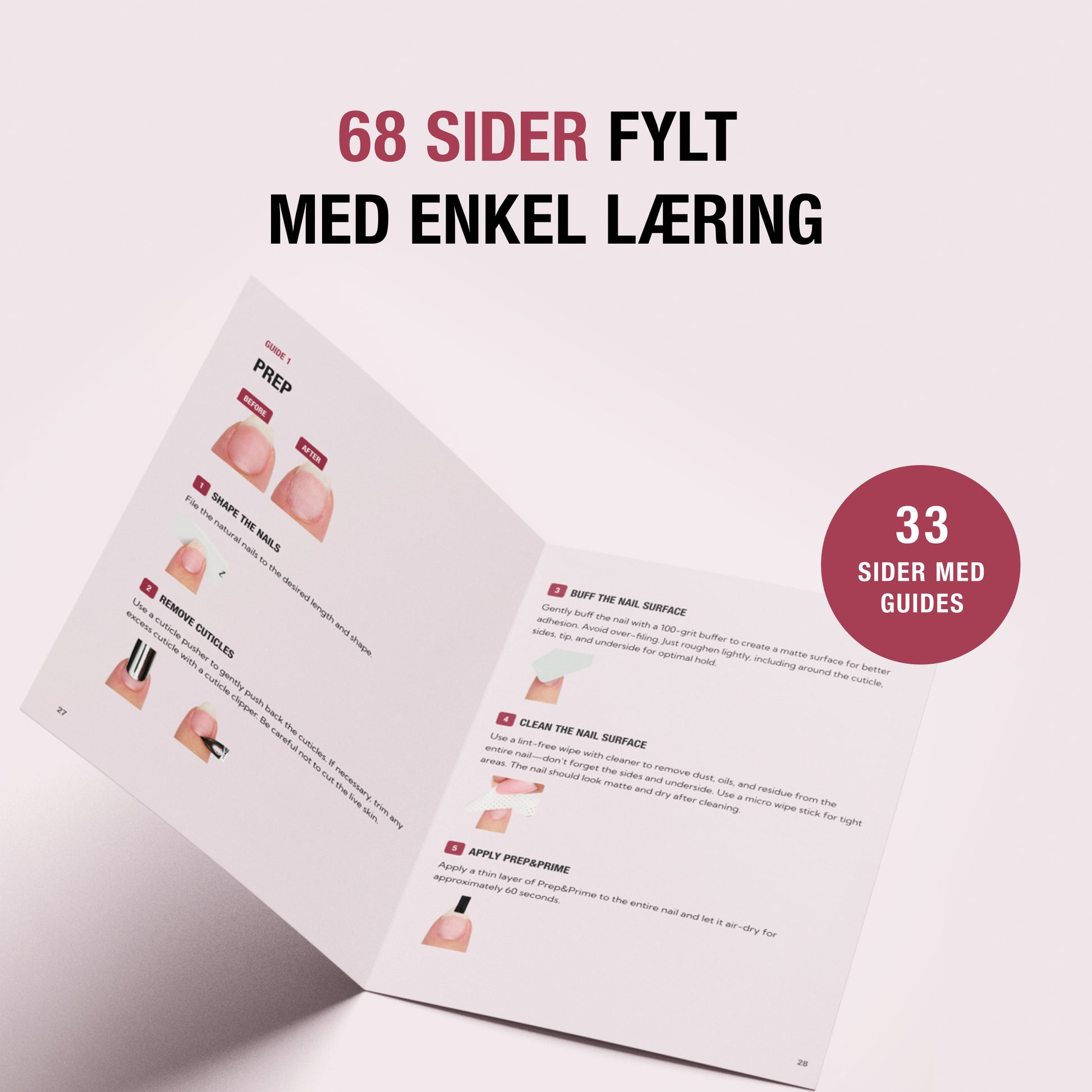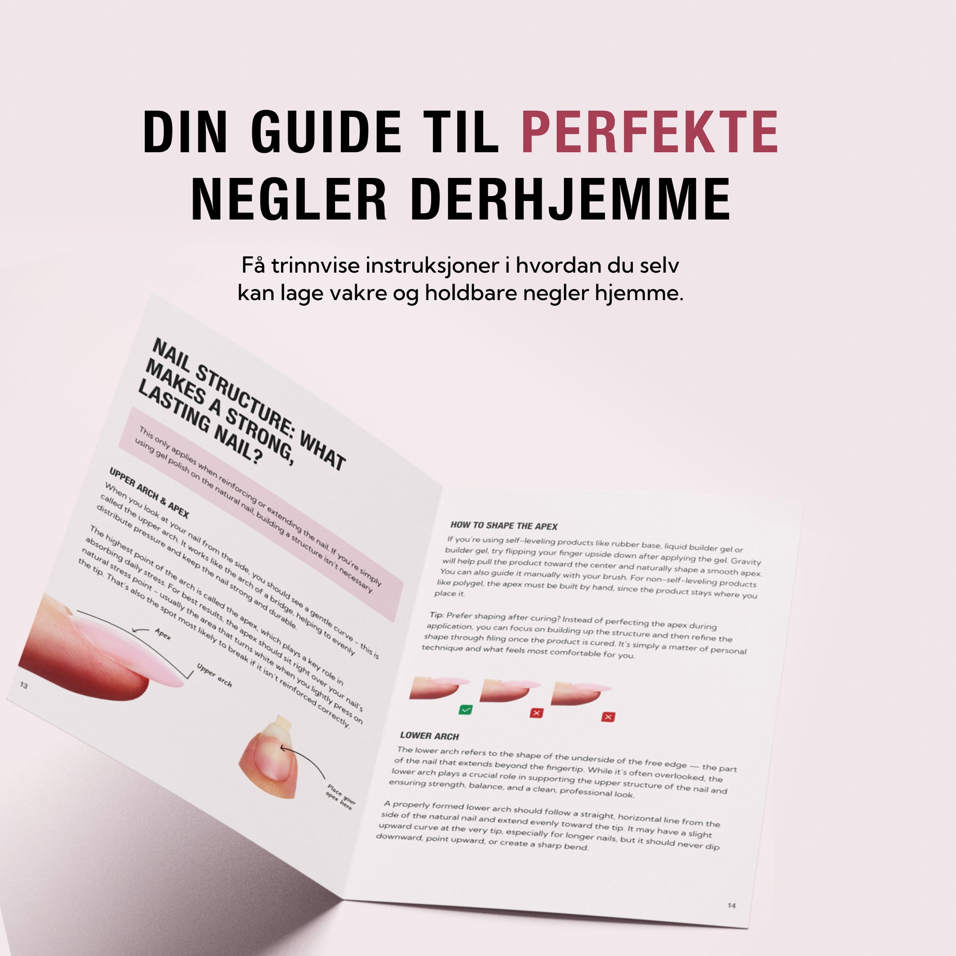 Den inneholder en introduksjon til våre startpakker, grunnleggende negleteori, produktoversikter og visuelle trinn-for-trinn-veiledninger som viser deg nøyaktig hvordan du oppnår flotte resultater hjemme.