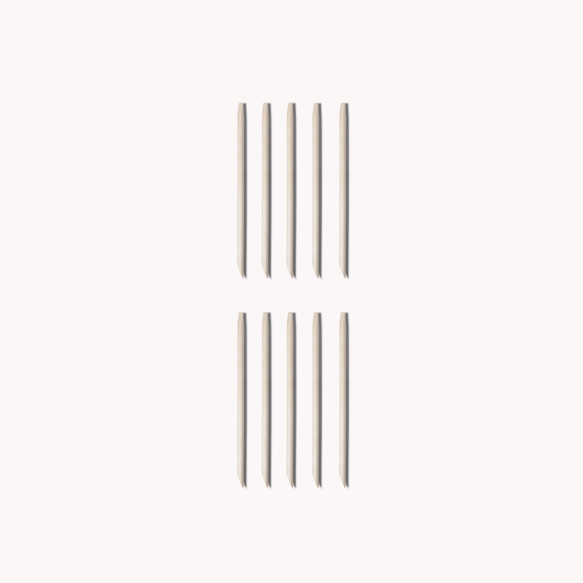 Begge ender er fantastiske for å fjerne produkt som feilaktig har rent ned i neglebåndsområdet. Tre-materialet sikrer en lett absorbering av produktet og er derfor ekstremt effektivt for nettopp å fjerne rennende produkt. I tillegg til å absorbere, er rosenpinnen også ideell for å skrape av oppløst produkt etter en soak off med aceton. Takket være den myke kjernen av tre, kan man lett og effektivt skrape av produktet uten å skade den naturlige neglen. Rosenpinnene kan også brukes til alt fra å skyve neglebånd eller til å lage nail art av forskjellige slag - kun fantasien setter grenser.
